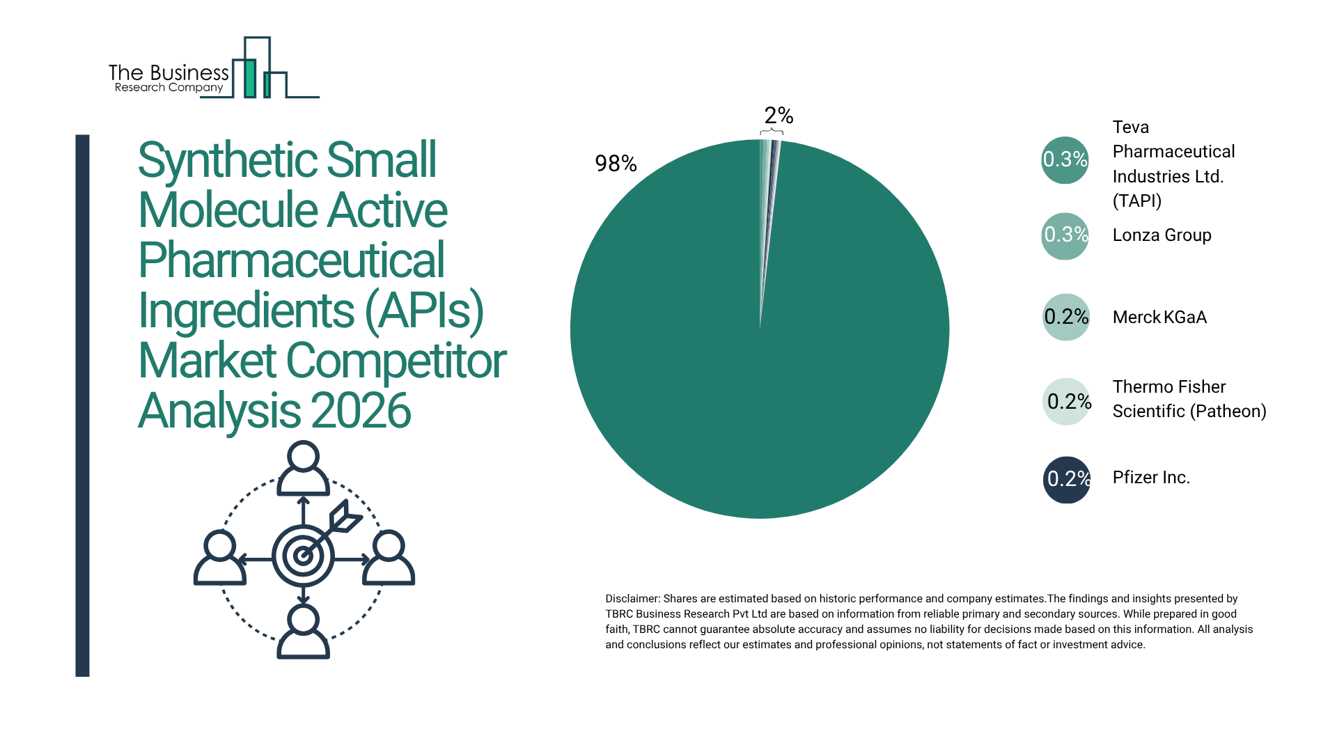 LONDON, GREATER LONDON, UNITED KINGDOM, April 21, 2026 /EINPresswire.com/ — “The synthetic small molecule active pharmaceutical ingredients (APIs) market is characterized by the presence of established pharmaceutical manufacturers, contract development and manufacturing organizations (CDMOs), and specialized API producers focused on scalable, high-quality, and cost-efficient drug substance production. Companies are prioritizing advanced chemical synthesis capabilities, process optimization, high-potency API (HPAPI) development, and regulatory-compliant manufacturing practices to enhance competitiveness and meet stringent global quality standards. Additionally, increasing emphasis on supply chain resilience, backward integration, and adoption of continuous manufacturing technologies is shaping the competitive landscape. Understanding the competitive dynamics is essential for stakeholders aiming to capitalize on rising demand for generic and specialty drugs, strengthen outsourcing strategies, and secure long-term positioning within the evolving synthetic small molecule APIs market.